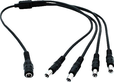This nifty cable allows you to power up to four CCTV cameras from one 12v DC CCTV power supply. Connect your 12v DC power supply to the female 2.1mm jack plug input and it will be distributed to all for 2.1mm male jack plugs.