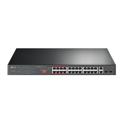 - 24 PoE+ 10/100 Mbps RJ45 ports, 2 Gigabit RJ45 ports,;and 2 combo Gigabit SFP slots